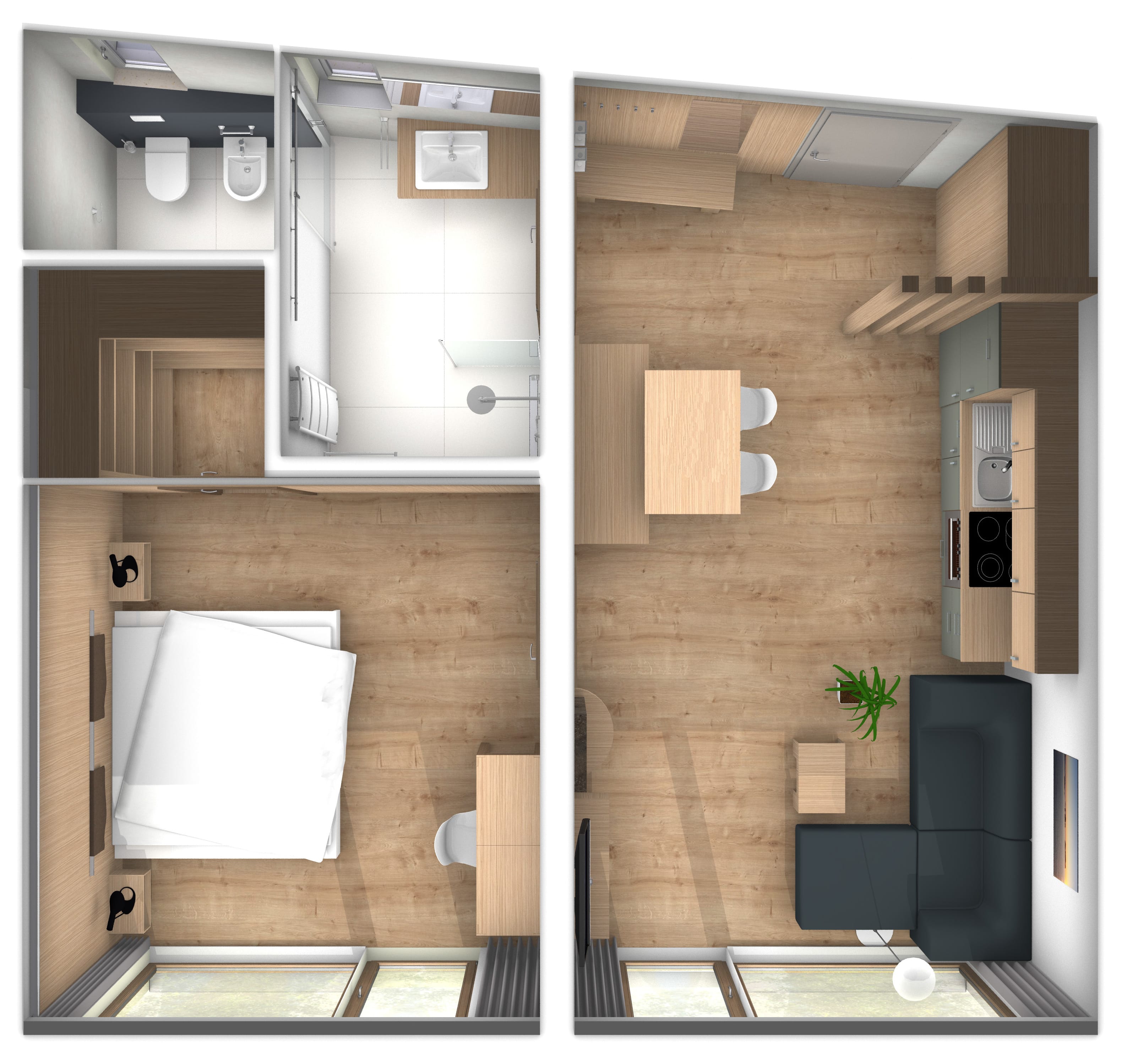 Wohn- und Essküche mit ausziehbarer Couch