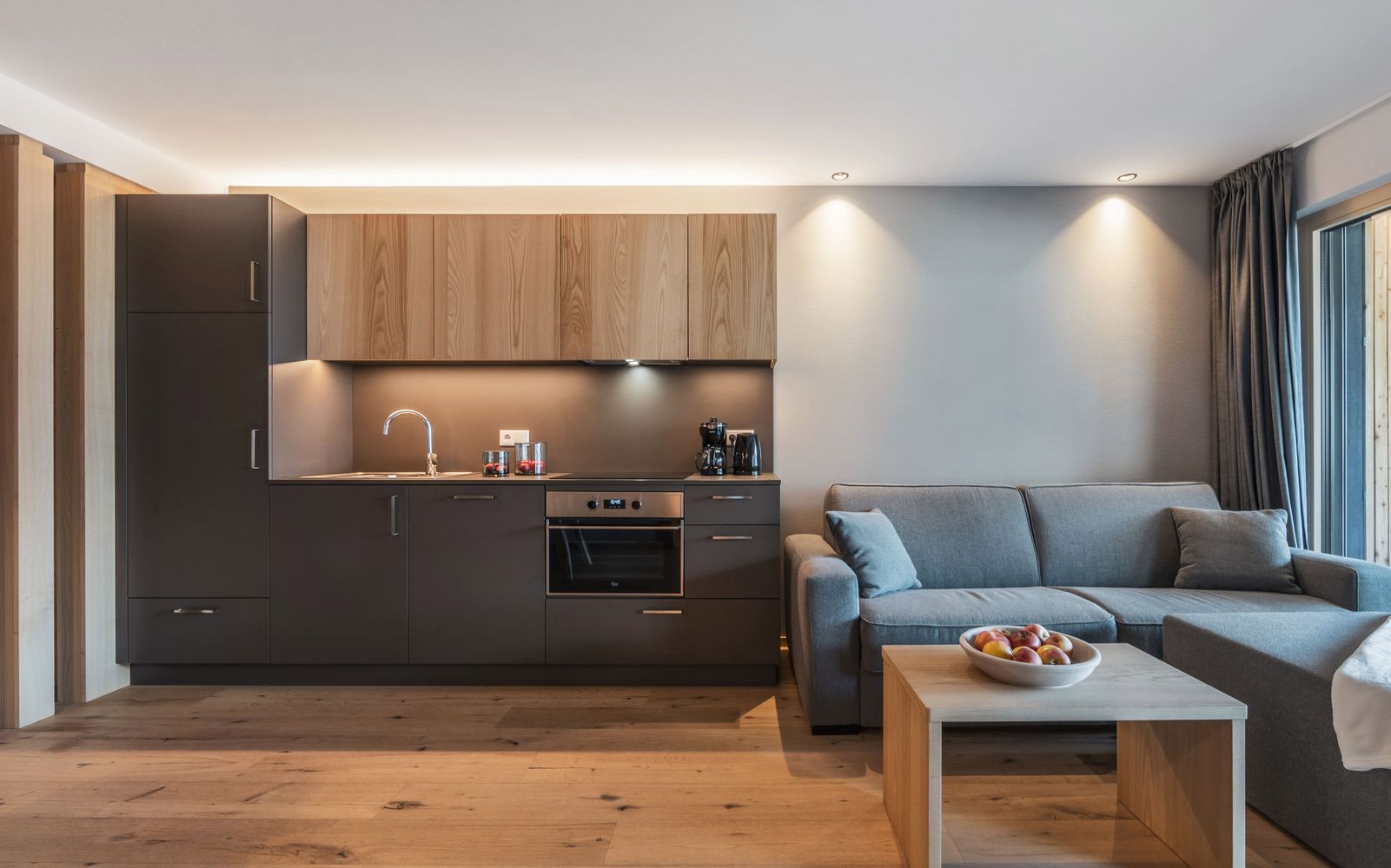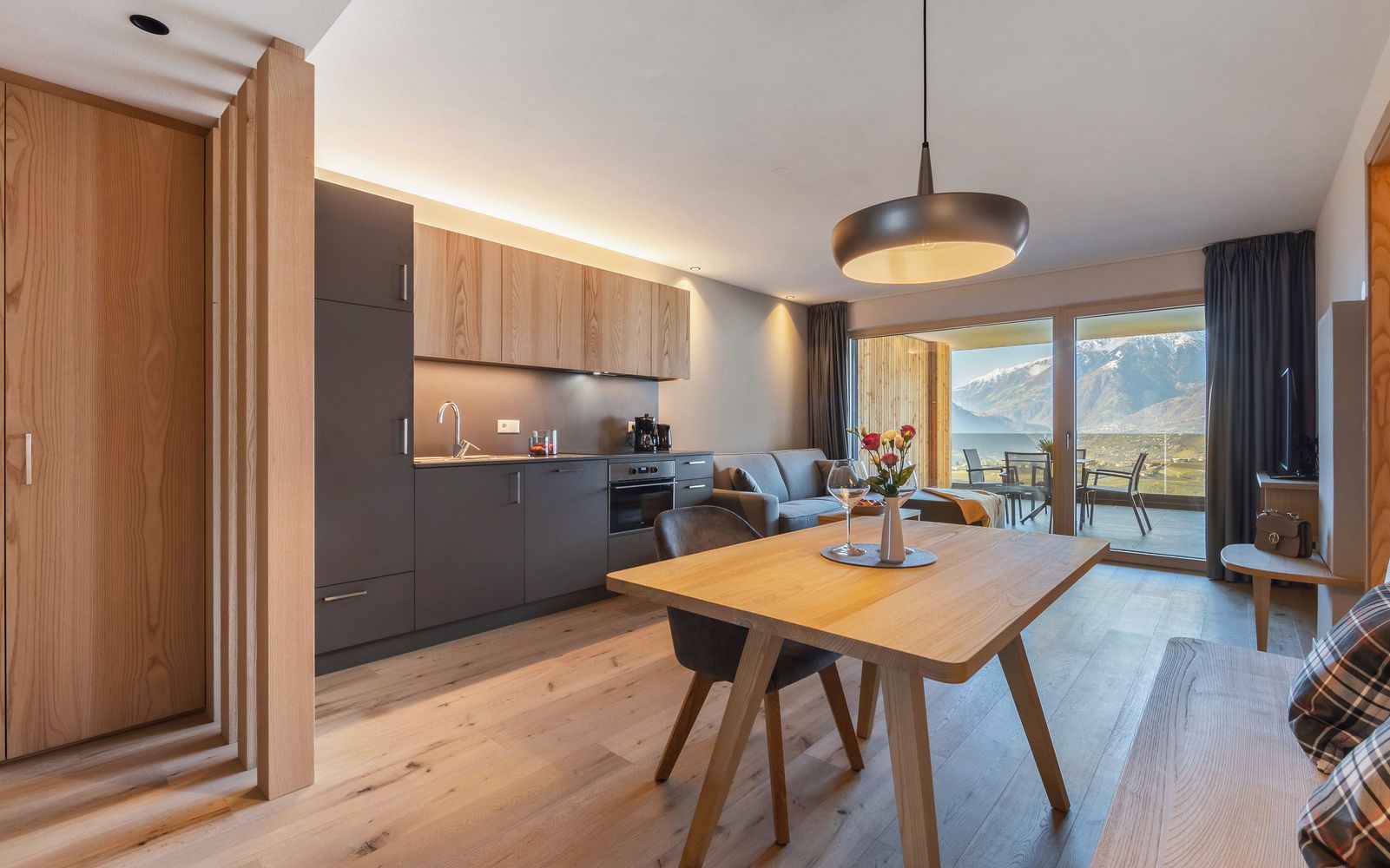 Bereits beim Eintreten im geschmackvoll eingerichteten Entree erleben Sie unsere Berglandschaft, die Sie umgehend von Ihren Sorgen und Gedanken ablenken wird. Darüber hinaus werden Sie hier enormen Komfort in Verbindung mit heimeliger Eleganz erleben. Lassen Sie aber spätestens Ihre Sorgen bei einem Dinner mit Ihrem Partner auf unserem 35 m² großen Balkon los und erfreuen sich nur mehr am Abendrot und Ihrer Zweisamkeit.