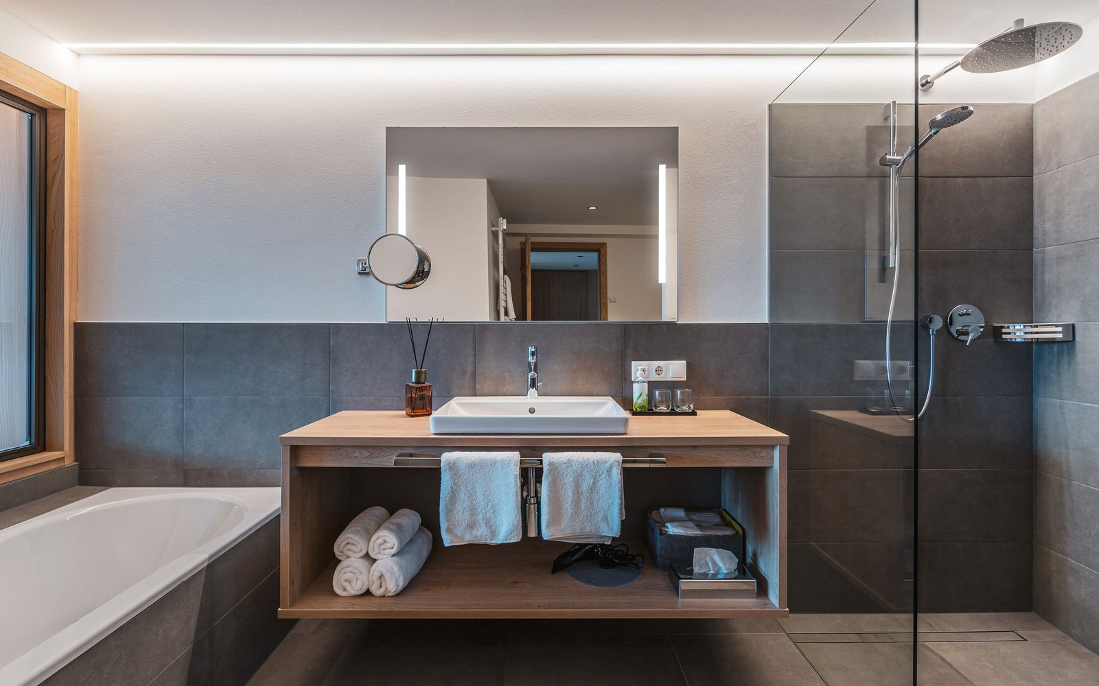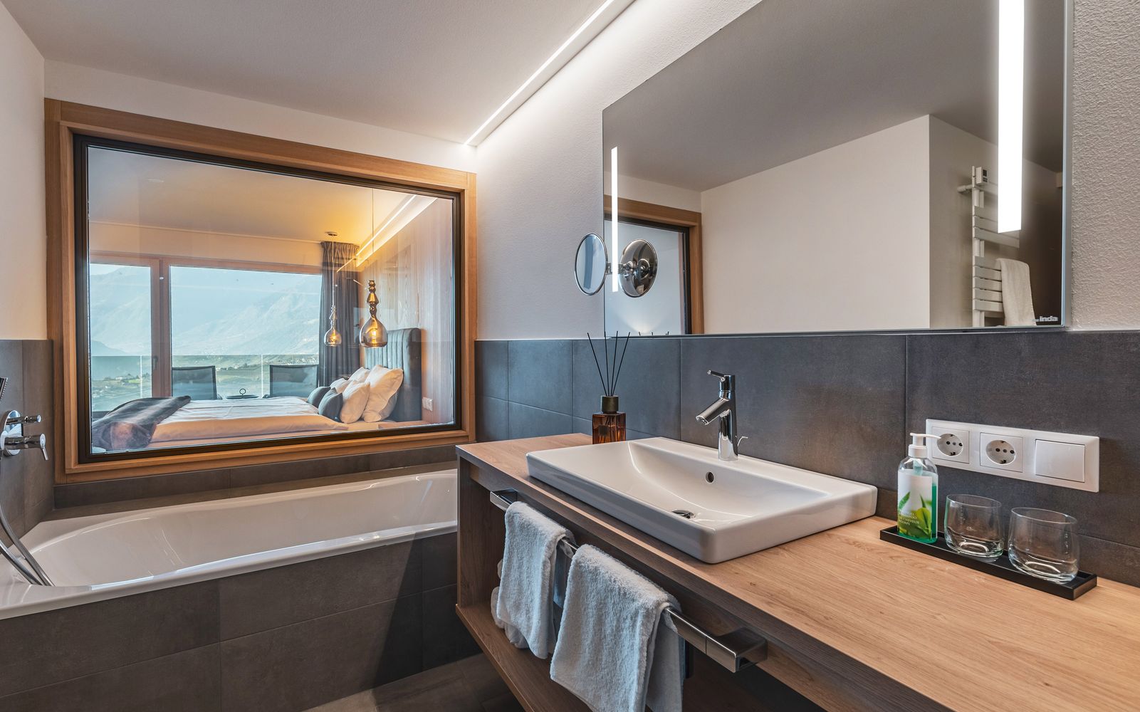 Genießen Sie alleine oder zu zweit bei einem wohltuenden Schaumbad unsere Südtiroler Berge und spüren sich dabei vom Sog dieser Zeit losgelöst. Diese Badewanne verwöhnt Sie mit bestem Südtiroler Quellwasser sowie einem Panoramablick, der einen alles vergessen lässt. Nur für Sie wurde das Badezimmer mit einer Glasscheibe versehen um Ihnen dieses einmalige Erlebnis bieten zu können.