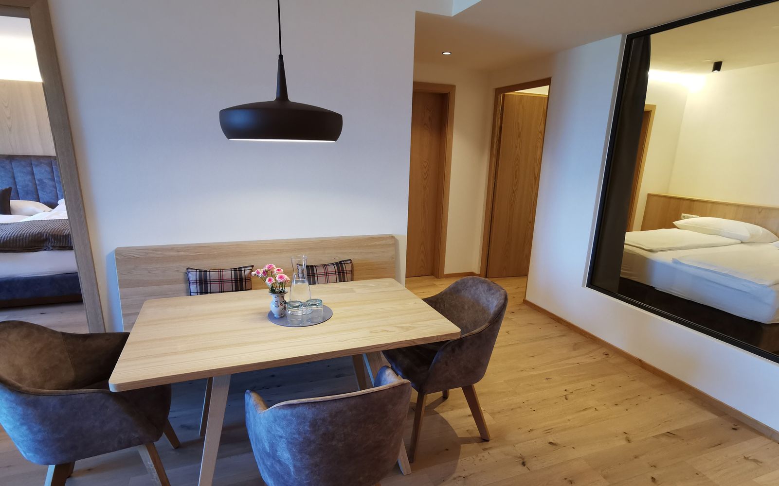 A holiday for two, four or six? In the Lodge at the Dornsberg Panoramic Apartments there’s enough room to accommodate all your nearest and dearest while on holiday. If there’re several of you, then how would two spacious bedrooms with a large living room and two bathrooms sound? Or a gourmet dinner, followed by a card game in the evening on the veranda – consider this your second living room.