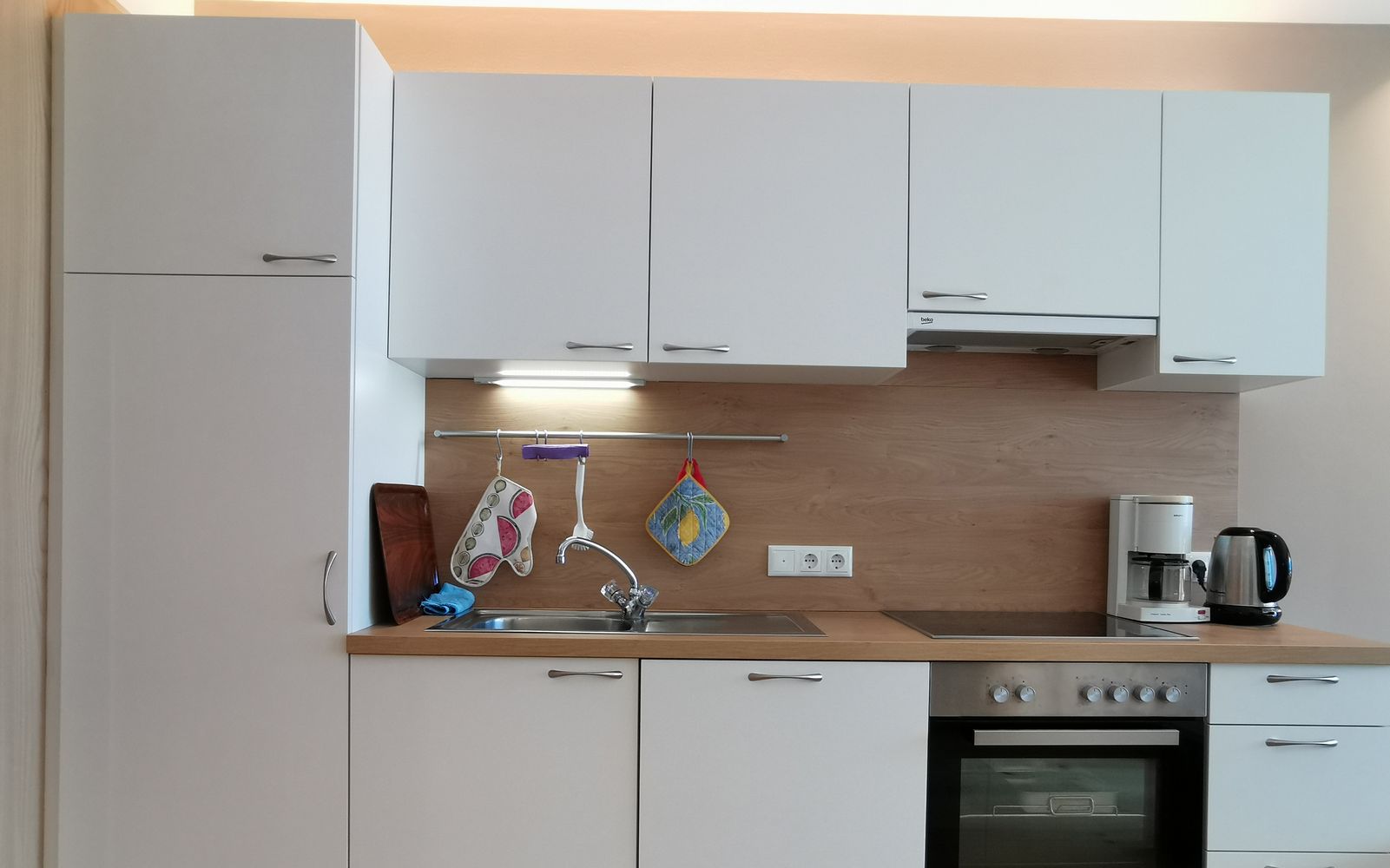 Fully fitted kitchen with dishwasher, refrigerator/freezer, oven, toaster, filter coffee and espresso maker, kettle, Plates, kitchen utensils and cutlery